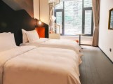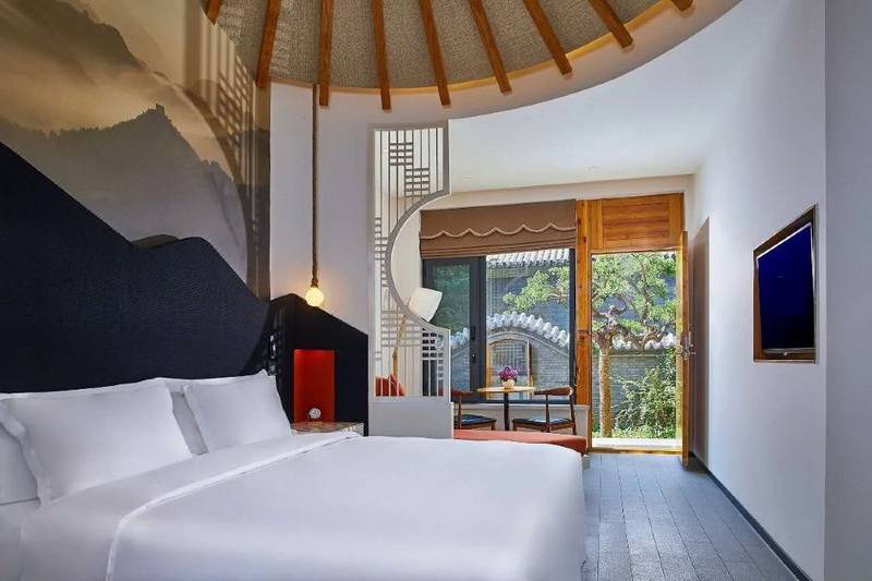 金山嶺長(zhǎng)城大酒店身處長(zhǎng)城腳下,群山環(huán)抱之中,四周青山環(huán)繞,置身酒店便可一覽長(zhǎng)城之雄奇,結(jié)合了先進(jìn)前沿的設(shè)計(jì)感與中國(guó)傳統(tǒng)文化特色,新潮的時(shí)尚與古老的歷史在這里完美融合。全天開(kāi)放的餐廳,擁有110個(gè)座位,以及3個(gè)包間。提供早餐、午餐及晚餐多種選擇。200間“眠繭”(客房及套房)以崇山峻嶺為設(shè)計(jì)靈感,融合了老北京四合院元素,賓客在這里既可以享受到便捷現(xiàn)代的各項(xiàng)設(shè)施,游覽到雄偉壯麗的長(zhǎng)城景象,還可以在休息室享受獨(dú)居一角的安逸。83間山谷房、88間庭院房、9間專(zhuān)享庭院房。大床房/雙床房可供選擇,配備座椅的大型共享庭院,2/3間房共享一個(gè)庭院,適合朋友、家人同游時(shí)居住。