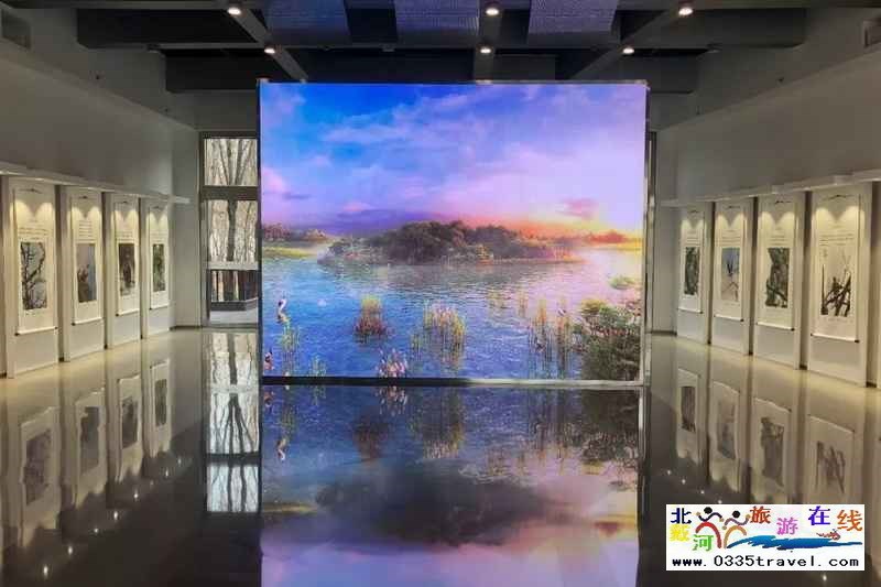 秦皇島是鳥類遷徙的重要驛站,豐富多樣的生態(tài)環(huán)境吸引著成千上萬的鳥兒在這里停留。在這里主要采用圖文展示了秦皇島作為候鳥驛站的優(yōu)越地理位置和資源優(yōu)勢(shì),同時(shí)通過投影及觸摸屏聯(lián)動(dòng)展現(xiàn)了秦皇島各個(gè)觀鳥點(diǎn)位所能看到的代表性鳥類,并通過半球狀動(dòng)態(tài)地圖生動(dòng)展示了鳥兒的遷徙路線。